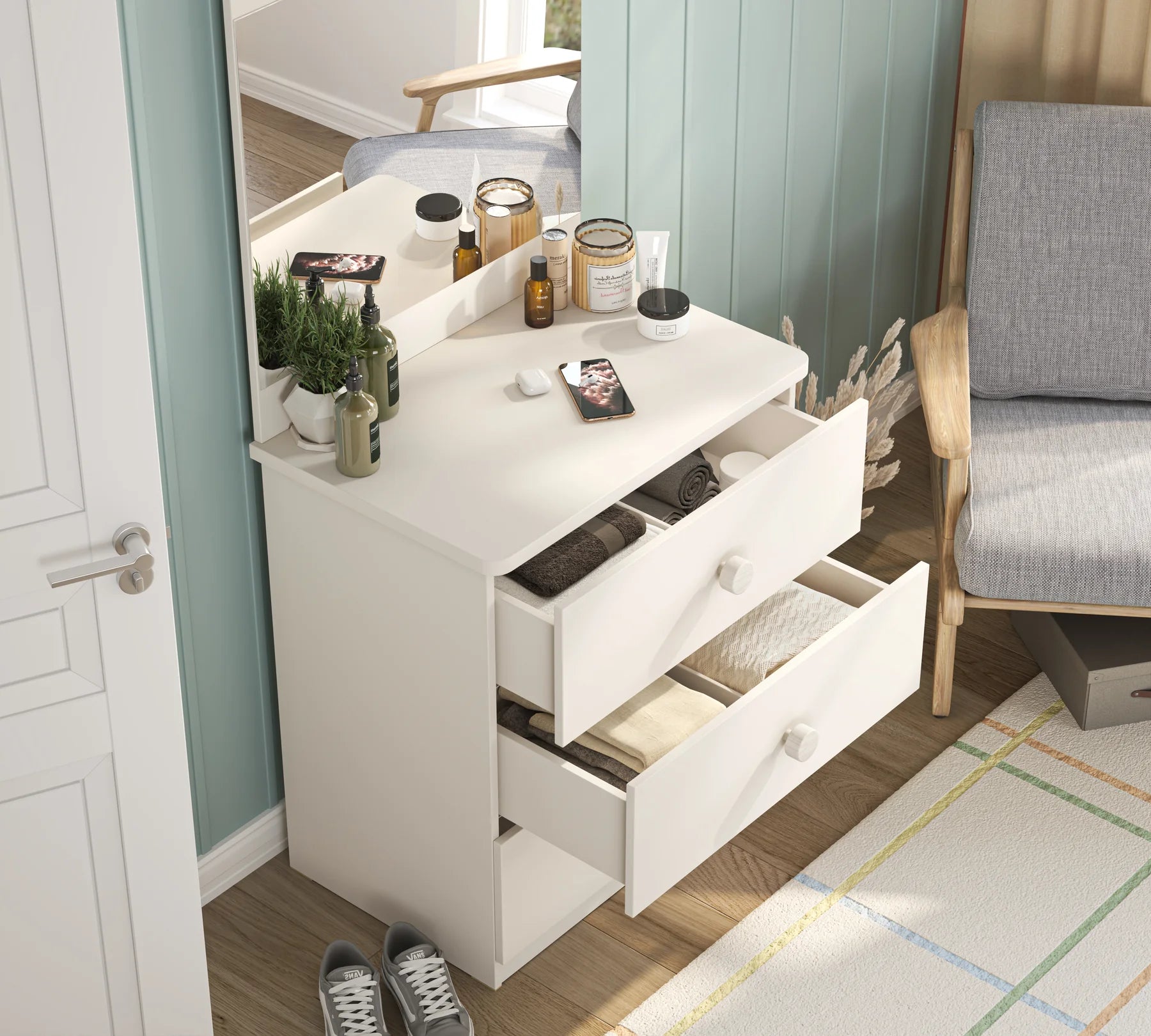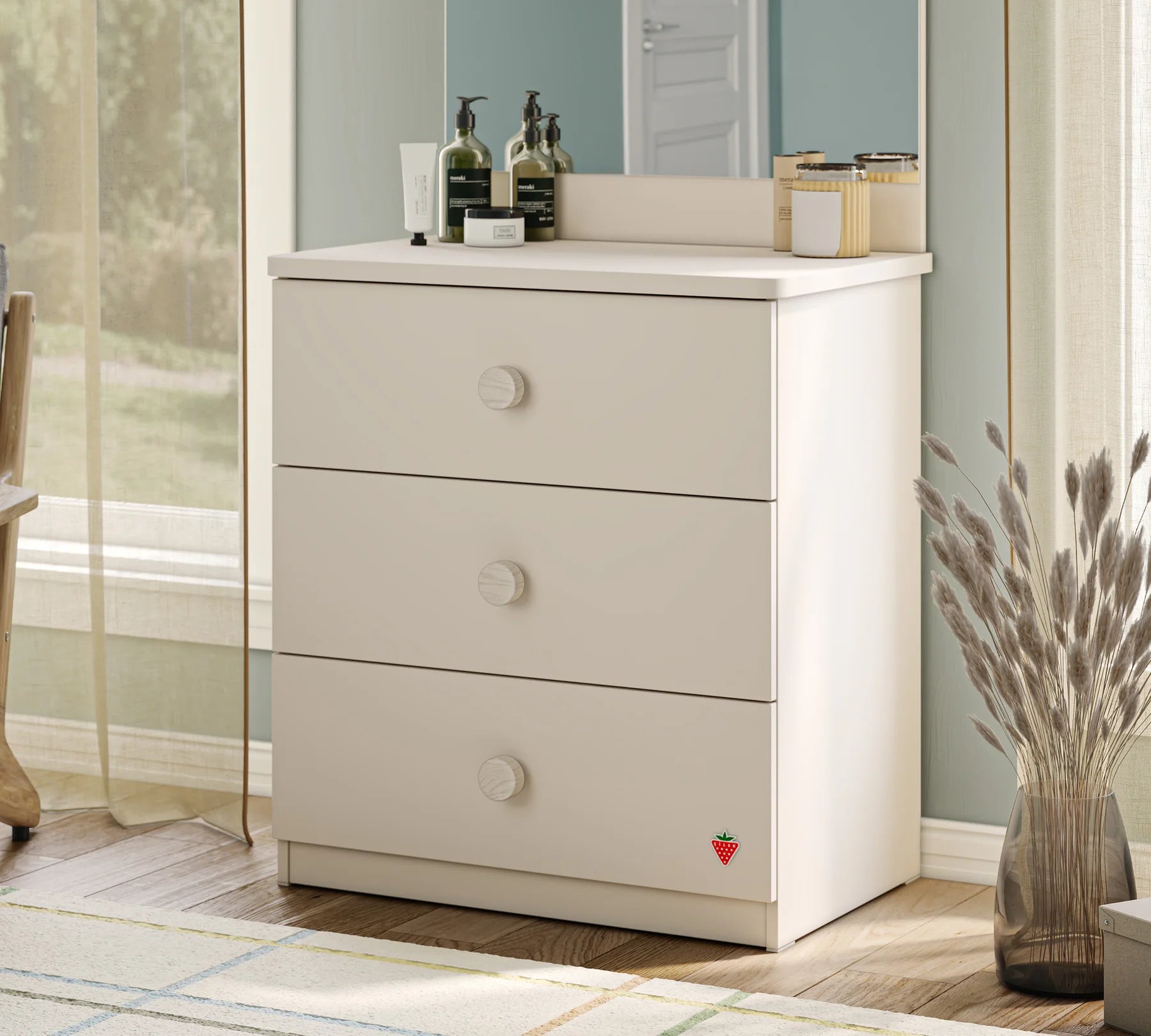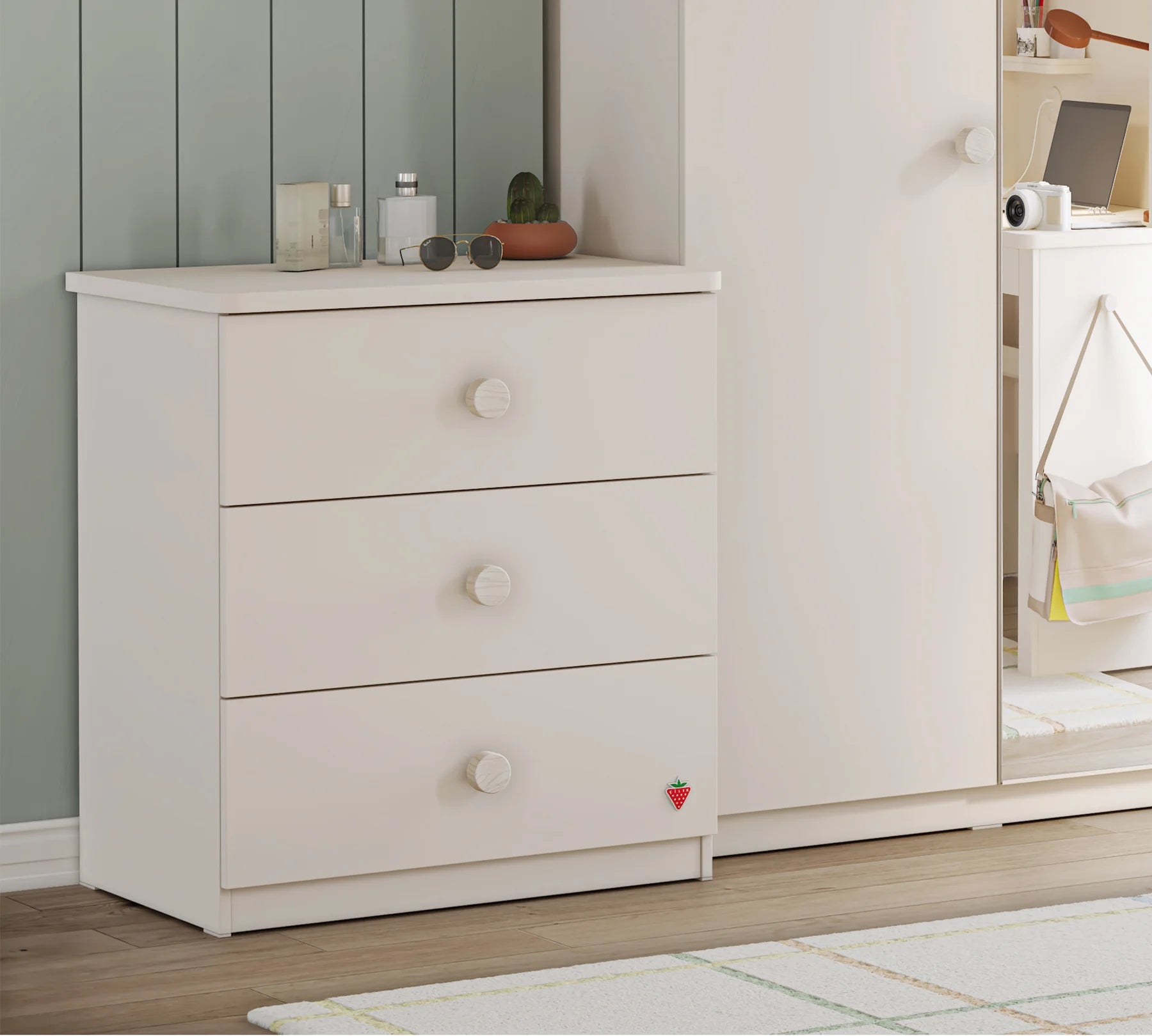 La commode Varia Crème se distingue par sa grande capacité de rangement et sa structure fonctionnelle. Avec ses trois tiroirs, elle permet de classer et organiser vêtements, accessoires et effets personnels de manière pratique et ordonnée.