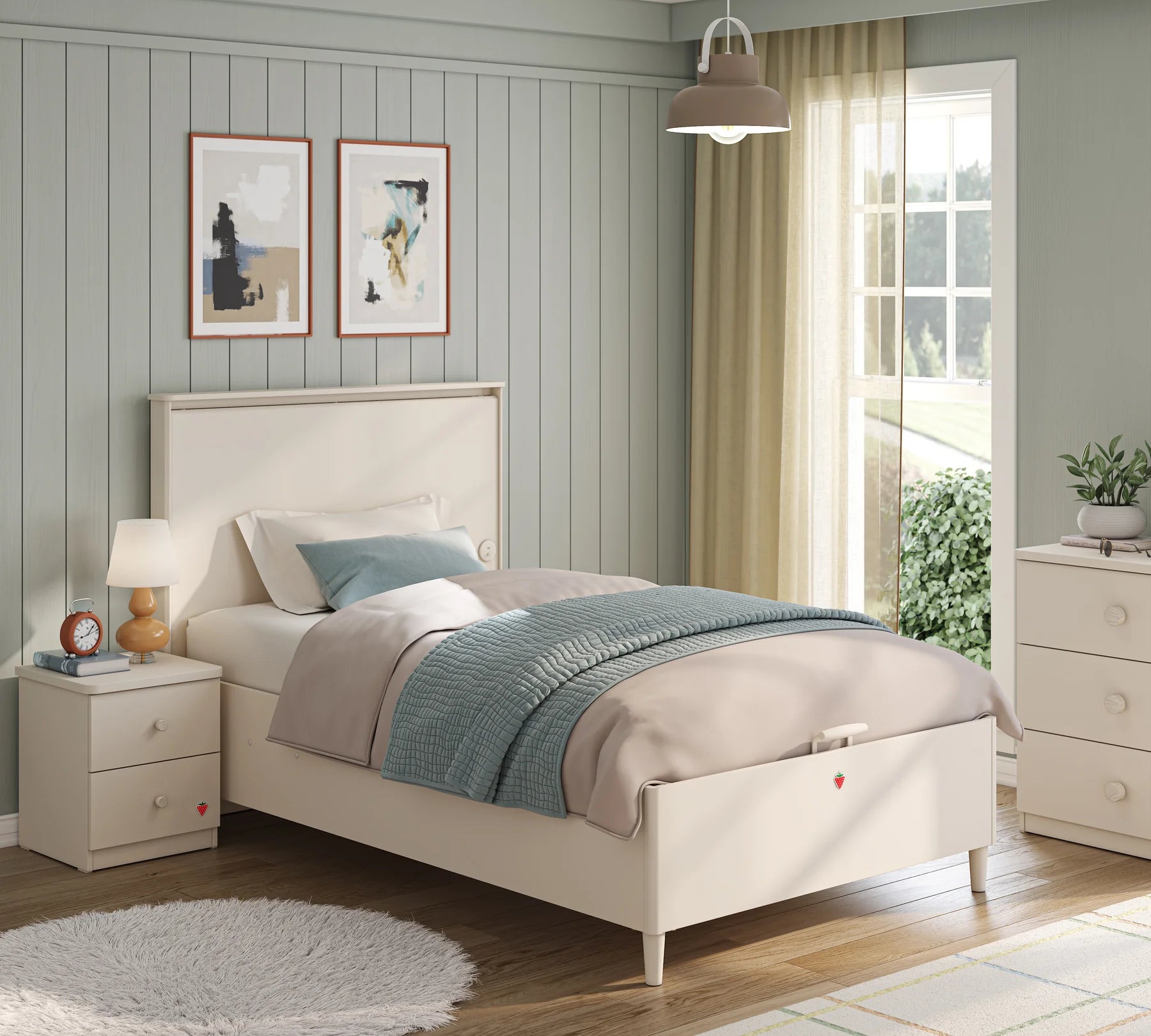 Lit avec rangement 100*200cm Varia "Crème"
