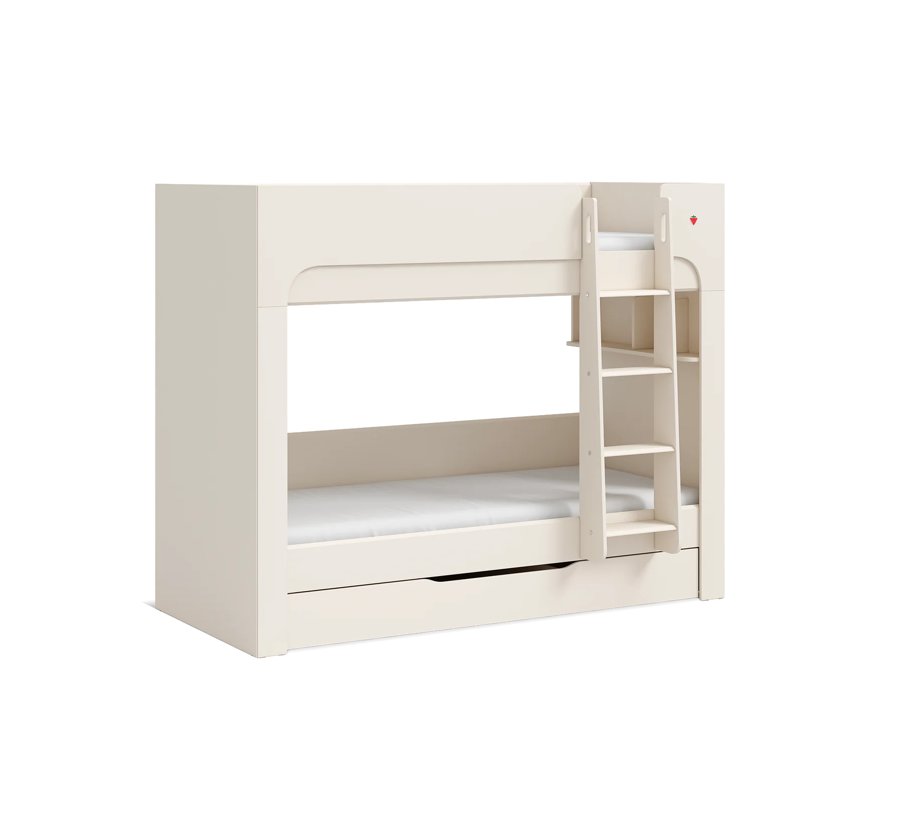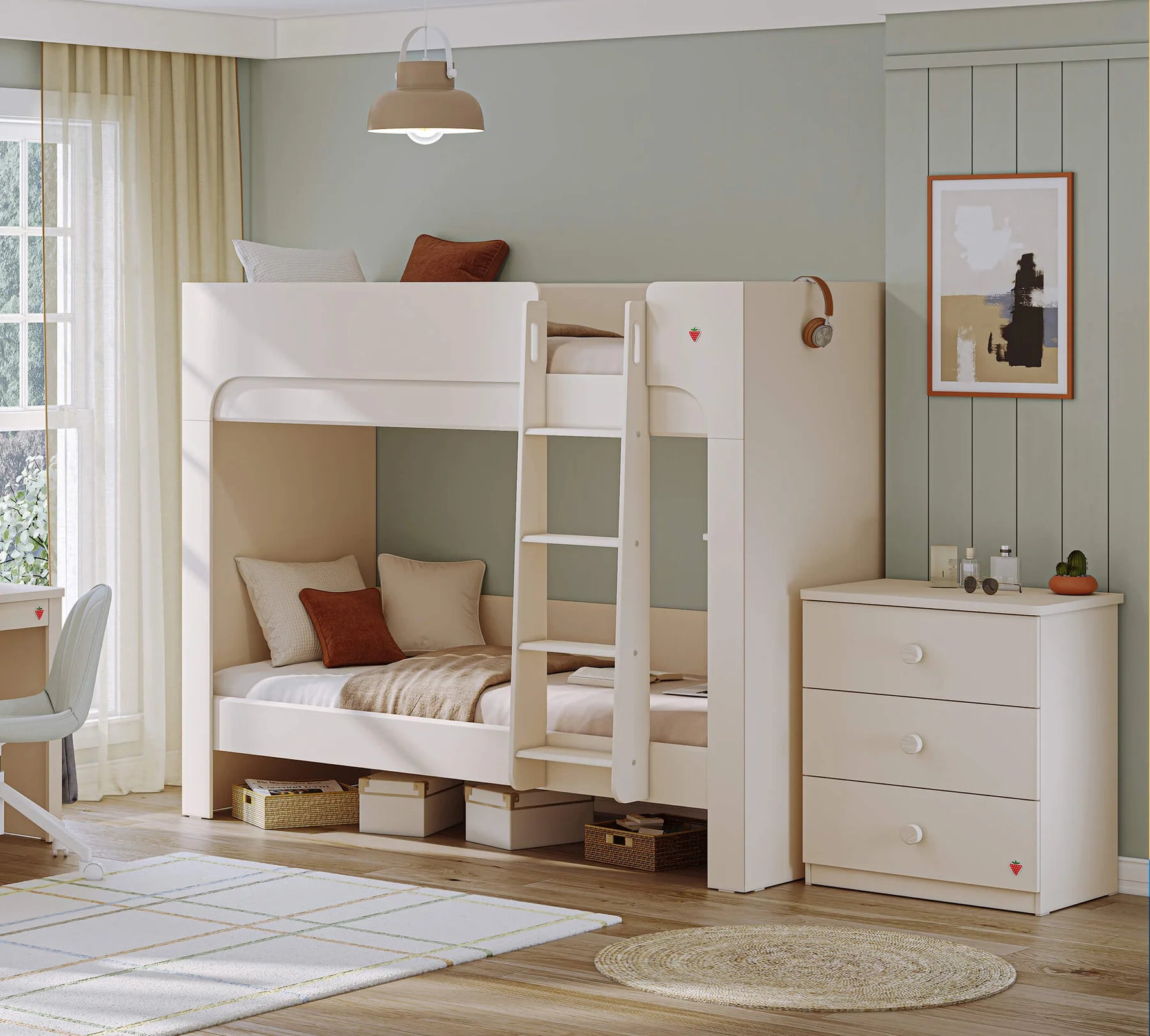 Le lit superposé Varia Crème est idéal pour optimiser l’espace des petites chambres tout en offrant solidité et sécurité. Avec ses dimensions de 90x200 cm pour le lit supérieur et inférieur, il garantit un grand confort de sommeil pour les enfants.