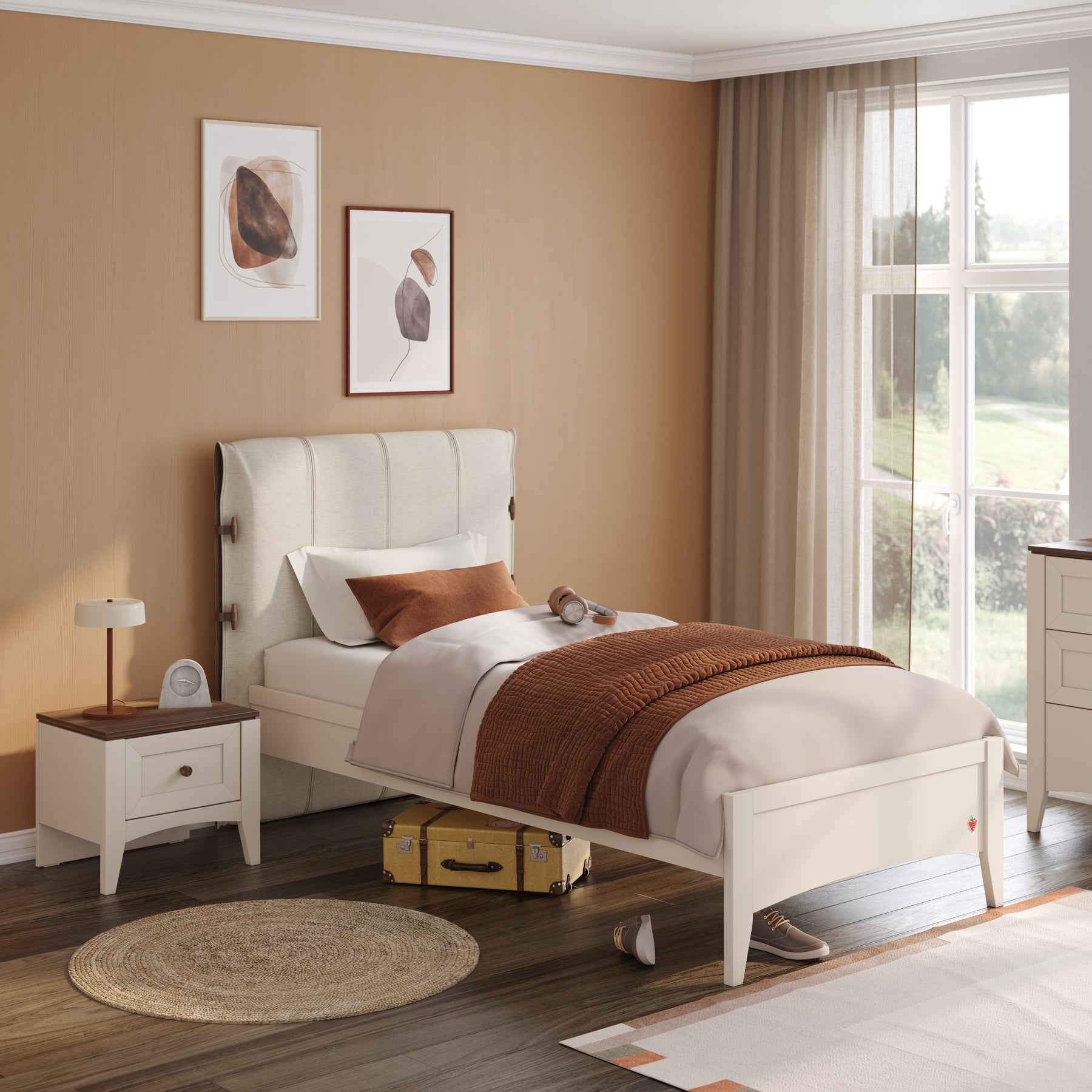 Le lit Lapel allie design moderne, élégance et fonctionnalité, idéal pour aménager une chambre d’adolescent ou d’enfant. Son mariage de couleurs Hamilton bois et Vario Vison crème apporte une touche contemporaine et chaleureuse. Les panneaux latéraux, tête et pied de lit en Vison crème renforcent l’esthétique raffinée de l’ensemble.