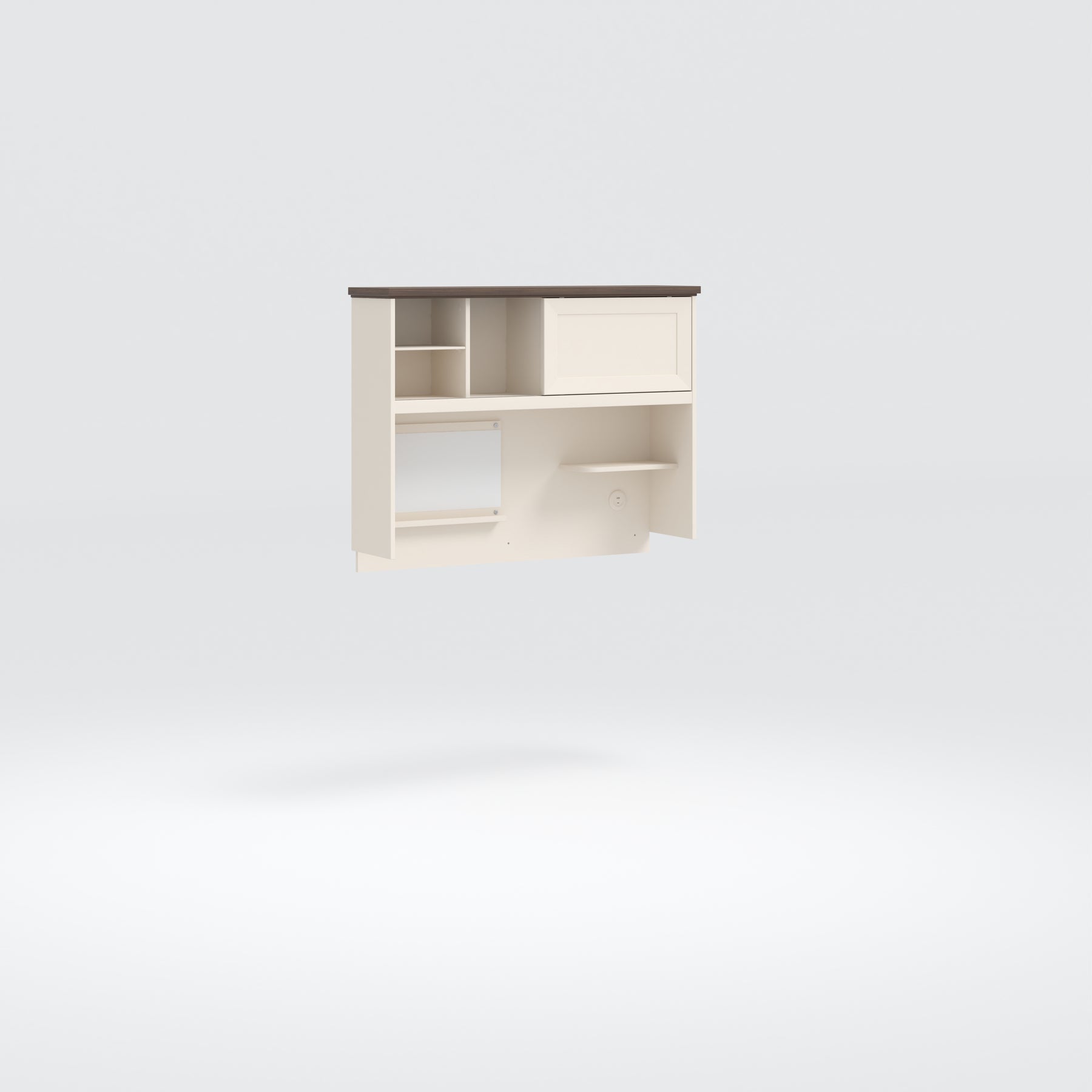 Associée au bureau, le surmeuble Lapel complète parfaitement l’ensemble avec le même mariage de couleurs. Son plateau supérieur couleur Hamilton et son espace de rangement avec porte coulissante permettent de conserver livres et accessoires bien organisés.
