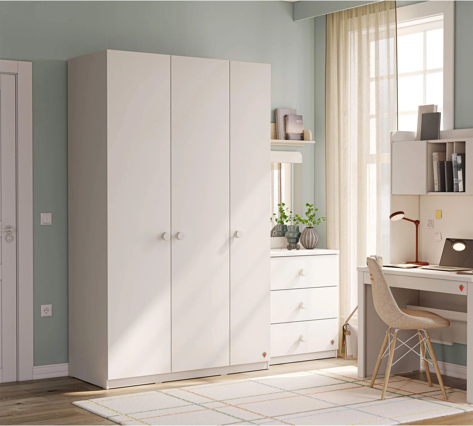 Grâce à ses lignes minimalistes et sa teinte crème intemporelle, l’armoire Varia 3 portes s’intègre parfaitement dans une chambre d’enfant, d’adolescent ou de jeune adulte, tout en répondant aux exigences des intérieurs modernes au Maroc.